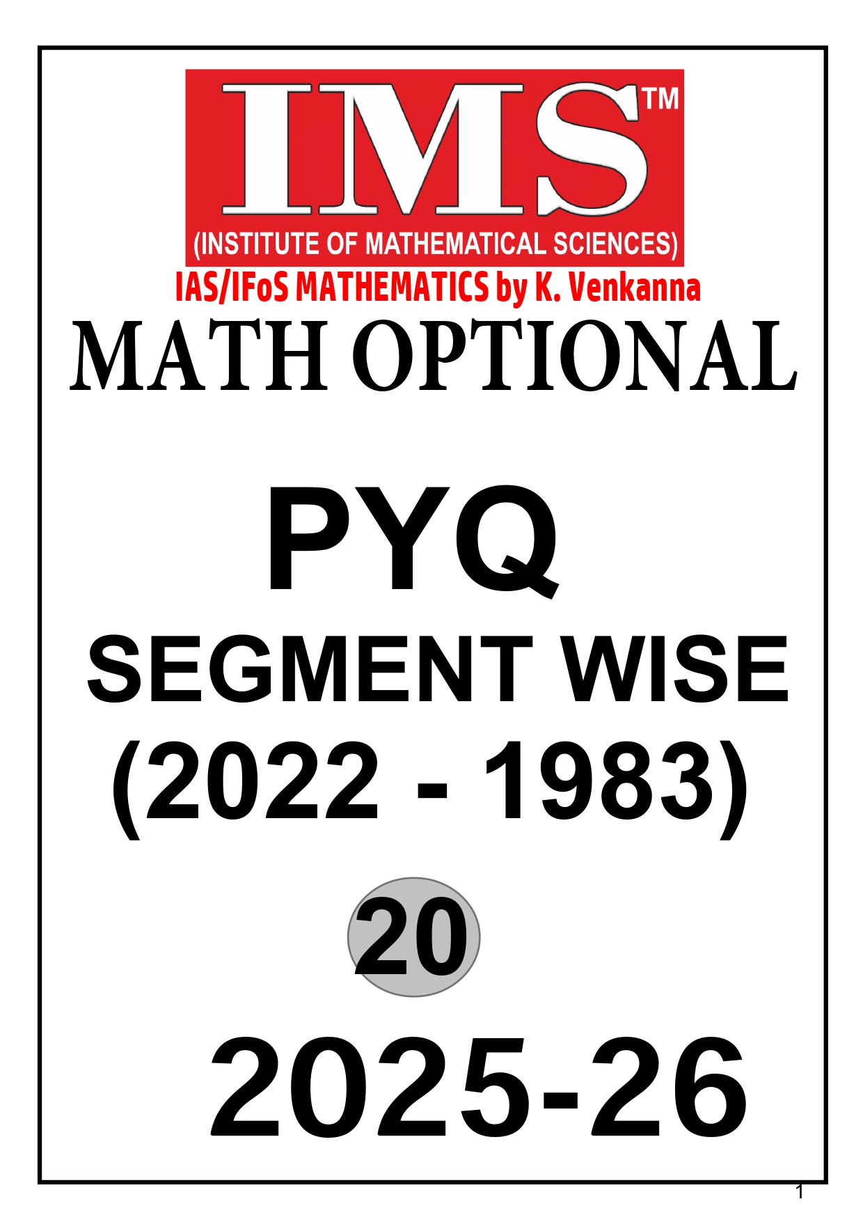 IMS Mathematics Optional Notes | Best Maths Optional Notes for UPSC | 27 BOOKLET