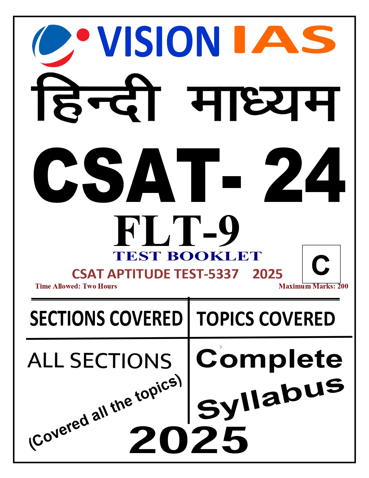 Vision IAS CSAT Test Series यूपीएससी सिविल सेवा प्रारंभिक परीक्षा (Paper-II) की तैयारी के लिए एक उच्चस्तरीय और विश्लेषणात्मक टेस्ट श्रृंखला है। यह श्रृंखला विद्यार्थियों की तार्किक क्षमता, गणितीय कौशल, और बोधगम्यता (Comprehension) को मजबूत बनाने के उद्देश्य से तैयार की गई है।