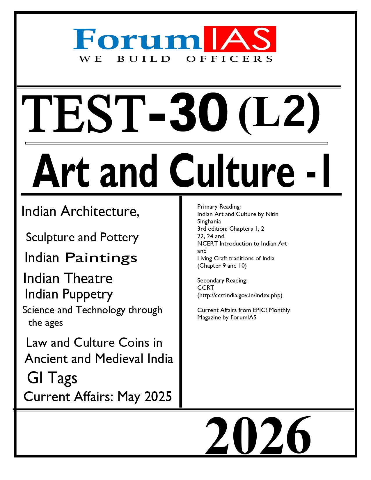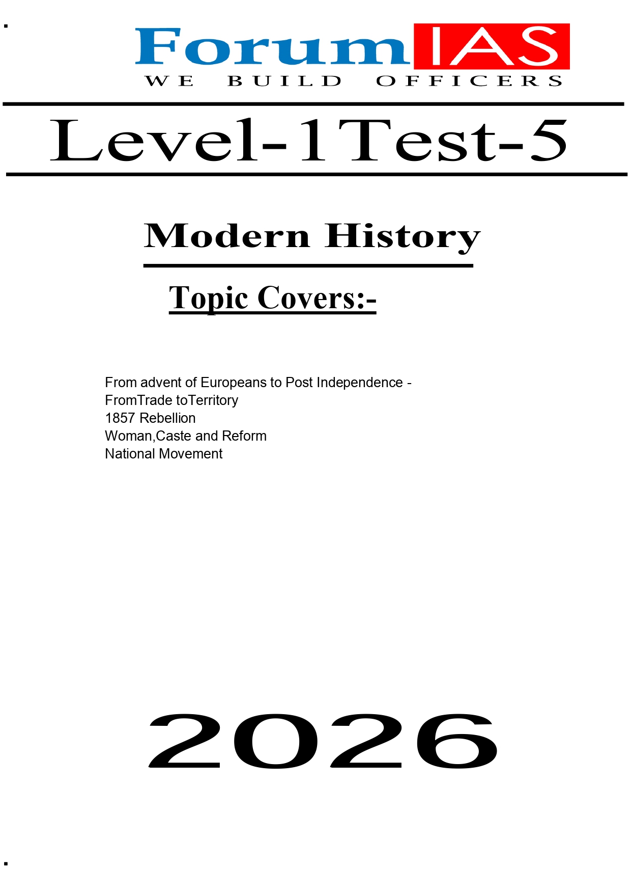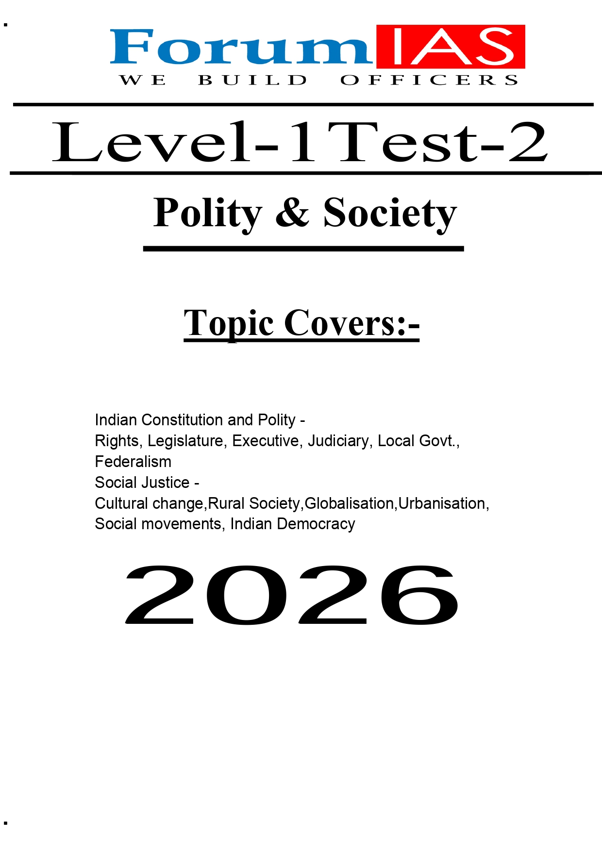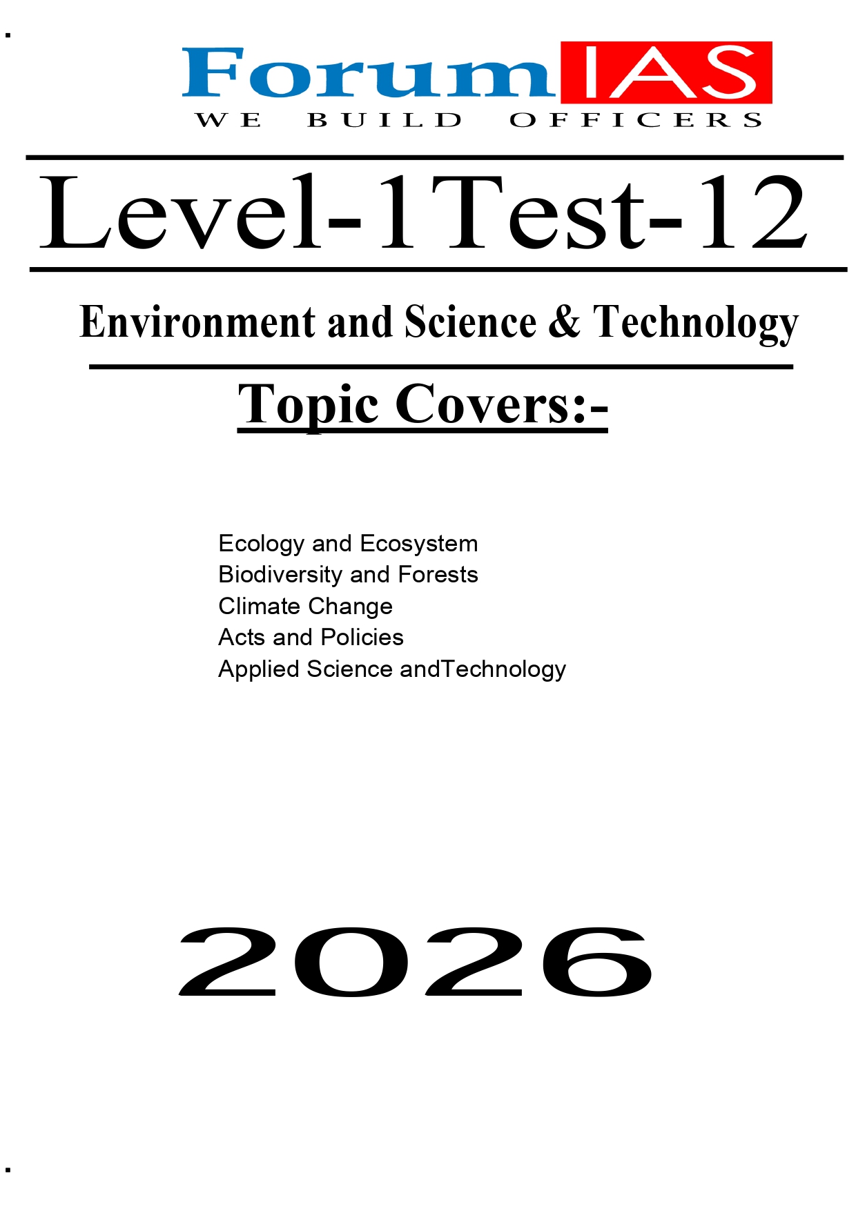 FORUM IAS PRELIMS ENGLISH MEDIUM TEST