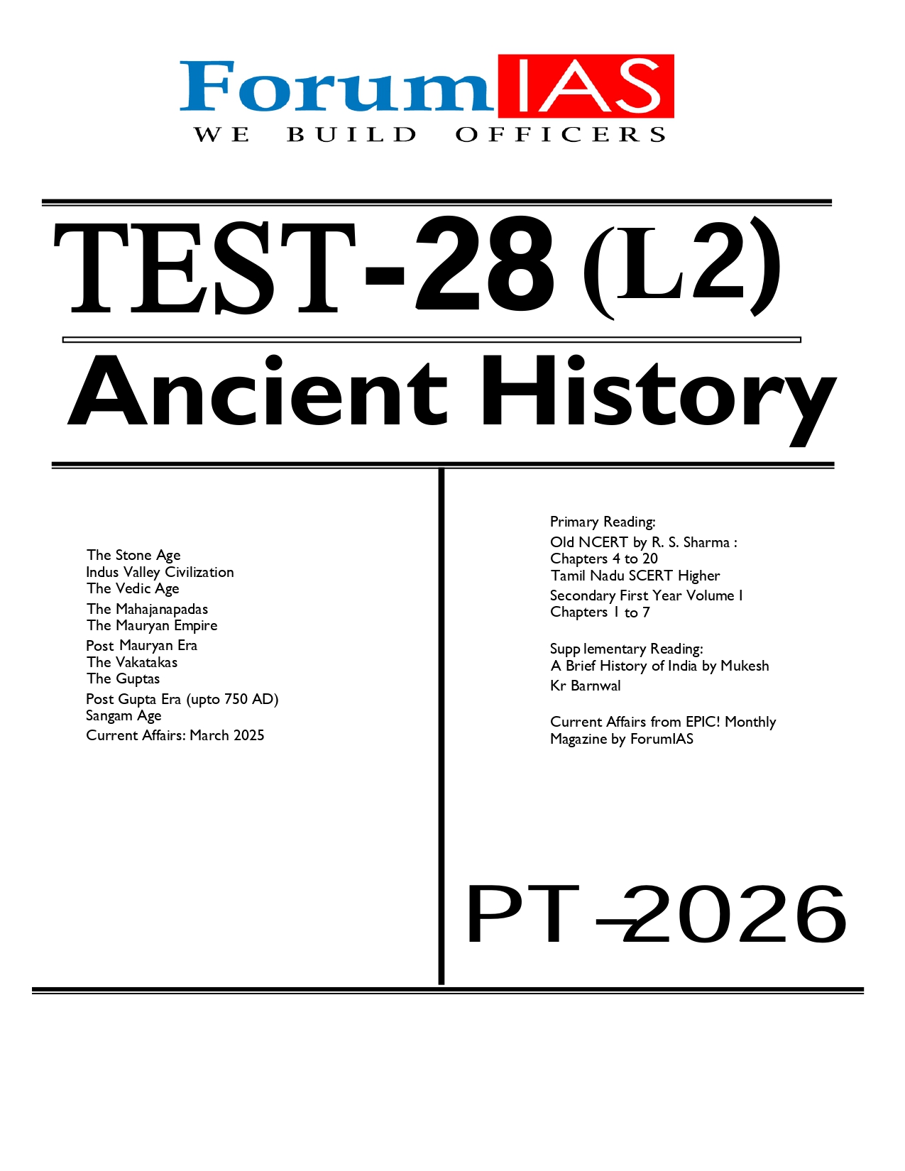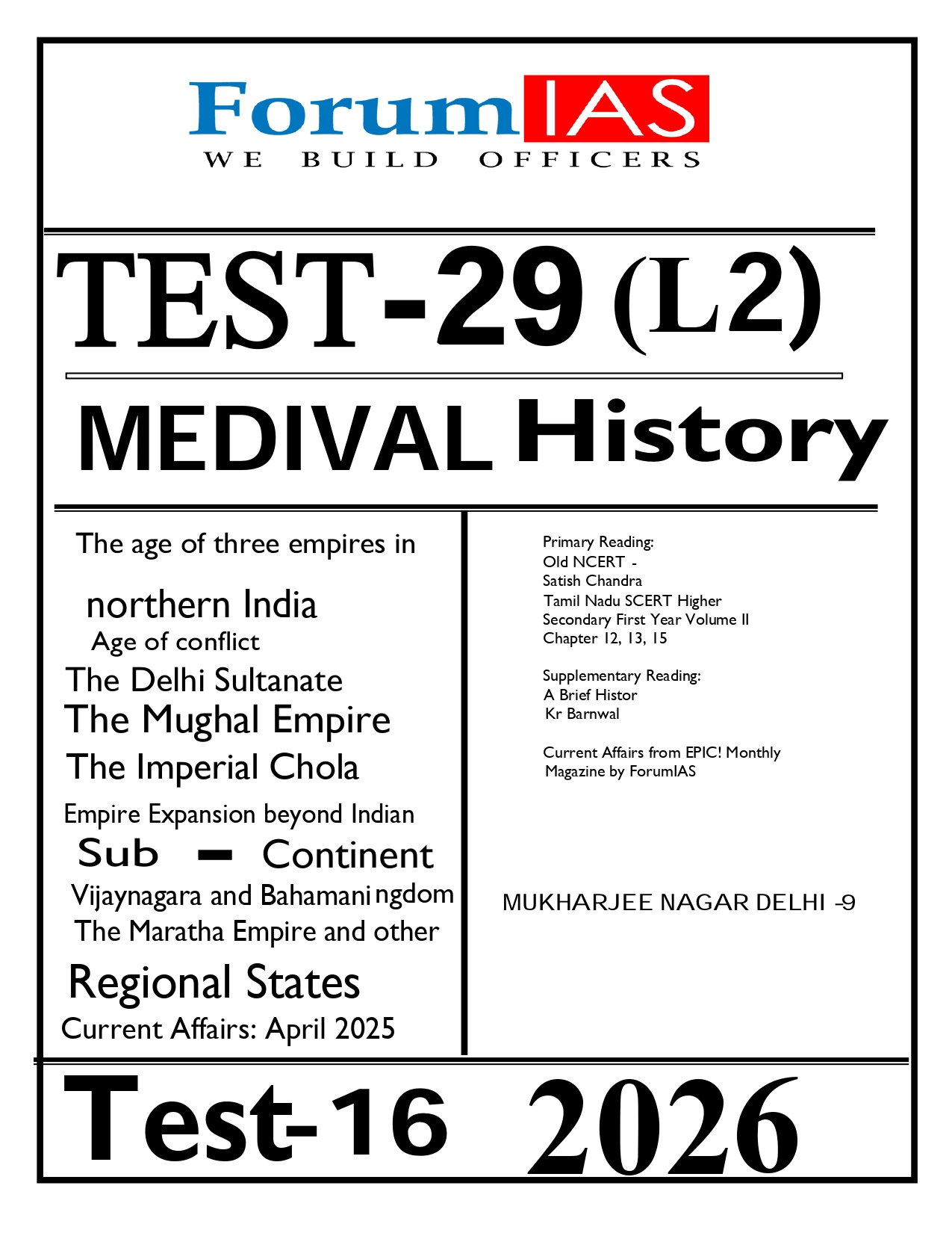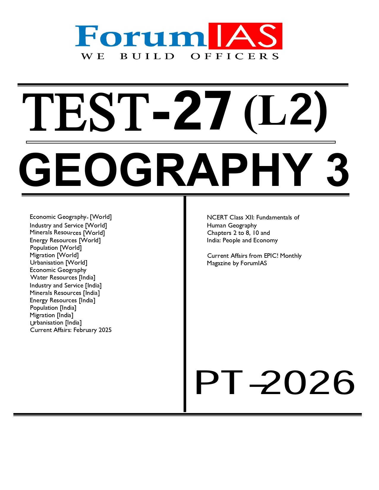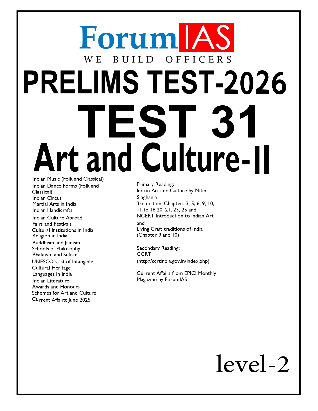 FORUM IAS PRELIMS ENGLISH MEDIUM TEST